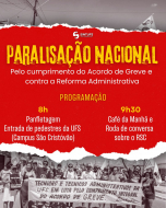 Na próxima quinta-feira (04), a categoria TAE da UFS paralisa suas atividades para participar do ato pelo cumprimento integral do acordo de greve e contra a Reforma Administrativa.