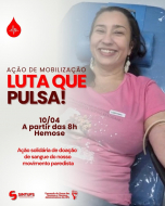 Na próxima sexta-feira (10), o nosso CLG realiza a 2ª edição da ação “Luta que Pulsa”, unindo solidariedade e mobilização na luta de reivindicação pelo cumprimento do acordo de greve. A atividade de doação de sangue e cadastro para ser doador/a de medula óssea acontecerá no Hemose, a partir das 8h.